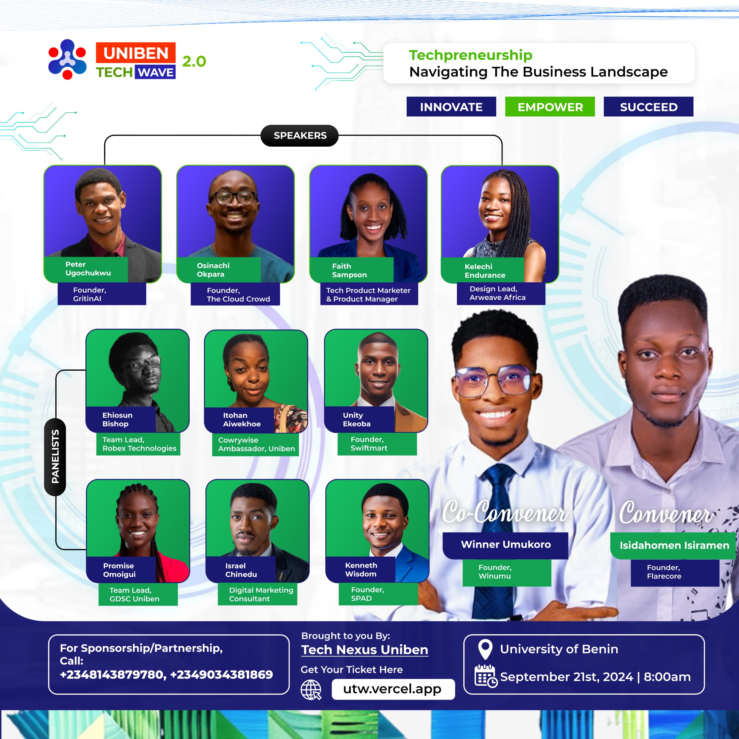 "UNIBEN Tech Wave 2024: Join us on 21st September for a groundbreaking event themed 'Techpreneurship: Navigating the Business Landscape'. Gain essential tools, strategies, and networking opportunities from industry leaders, keynote…