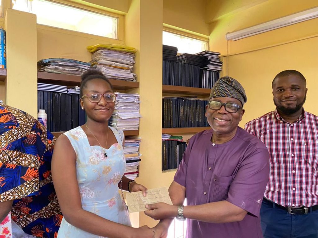 On Tuesday, 29th of July, a 400-level student, Favour Imuekehme, from the Department of English Language and Literature, Faculty of Arts and Humanities, was awarded by the department for being the best student in the department’s academic records.