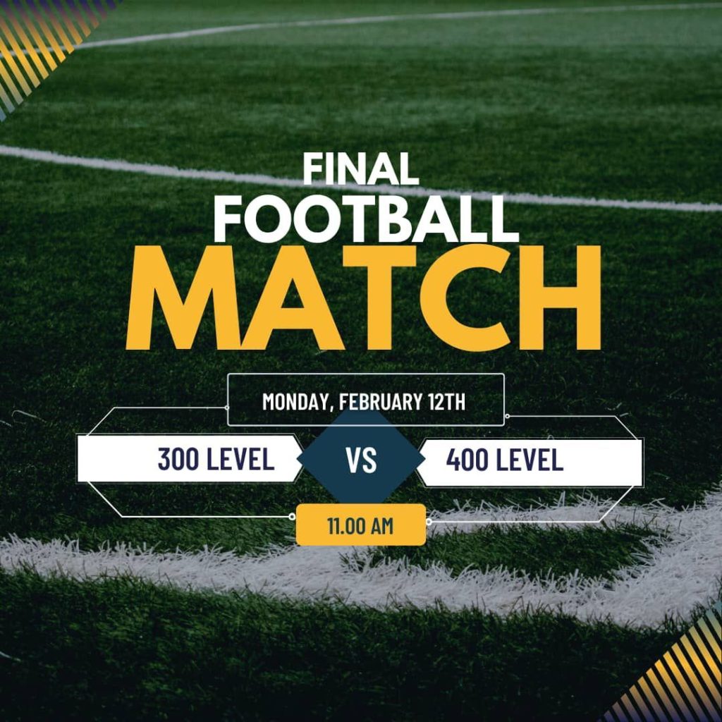 The match duration was an hour, with the 300-level class emerging victorious over the 400-level class with a match score of: 300 level 3:1 400 level. They defeated their rivals with 2 goal points.
