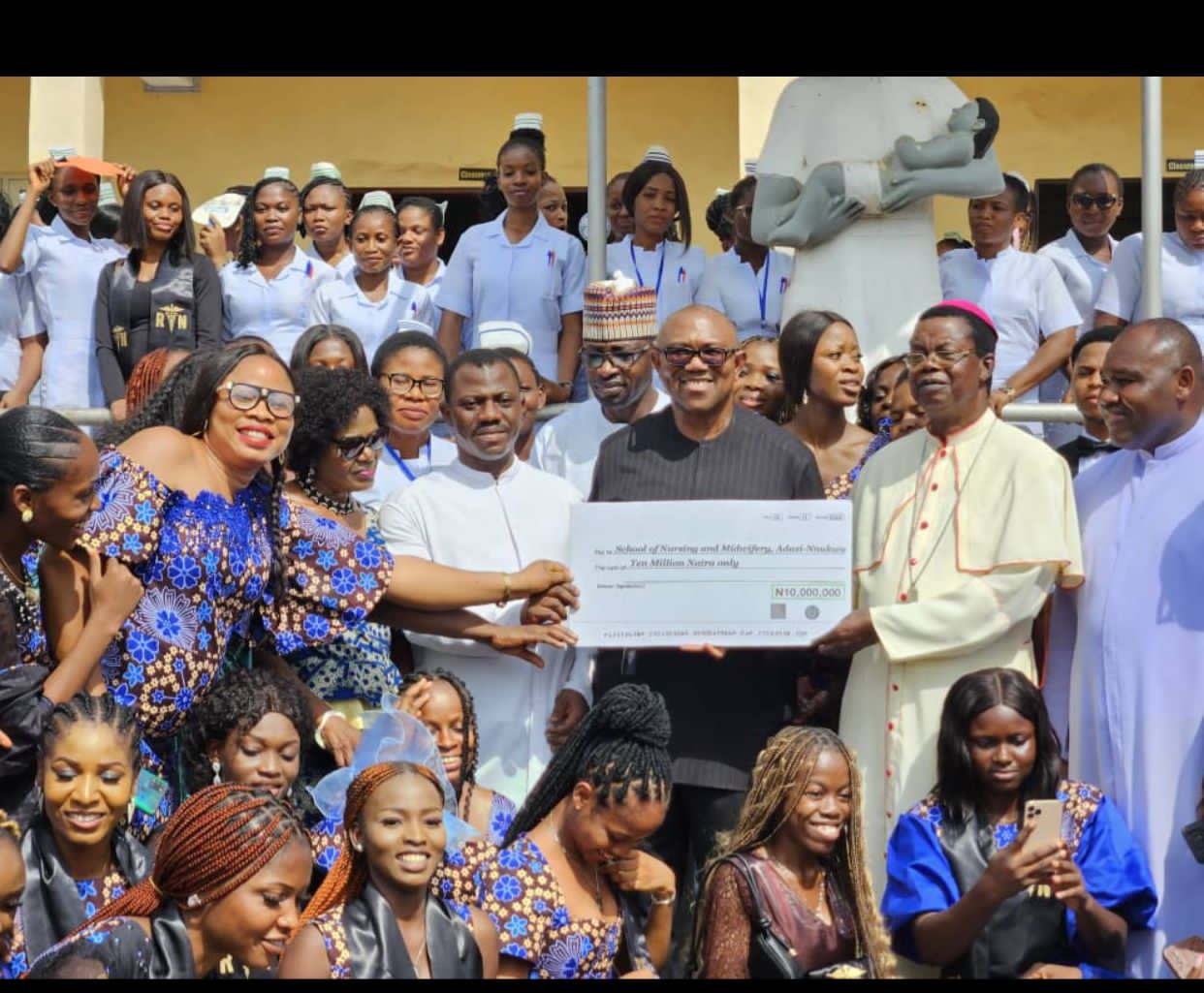 The former presidential candidate for the Labour Party, Peter Obi, paid a visit to Peter University, Achina, Anambra State, and the College of Nursing Science, Adazi Nnukwu.