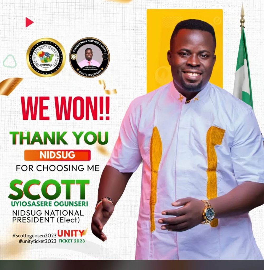 A major political figure in the University of Benin (UNIBEN) Community, Scott Ogunseri, has been elected as President of the Niger Delta Student Union Government (NIDSUG) following a closely contested by-election. Students from the University of Benin (UNIBEN) and across the Niger Delta region are rejoicing at the news of his victory over his opponent, Idowu Ayemobuwa.