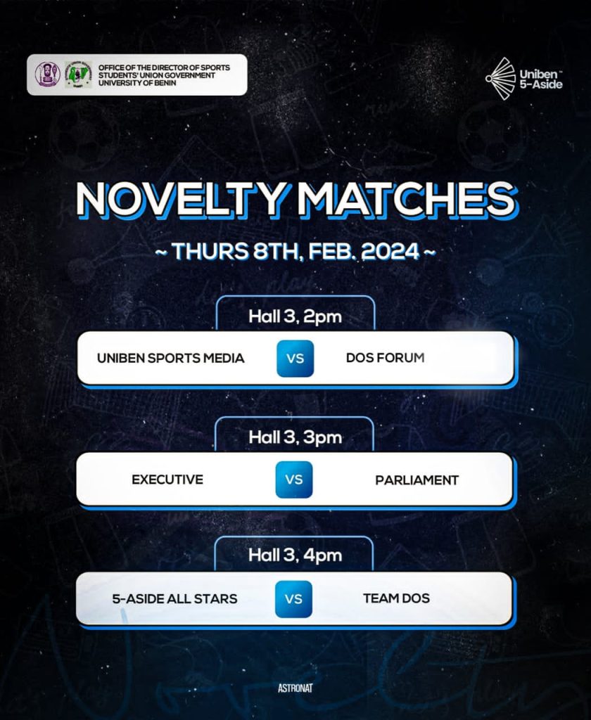 UNIBEN 5-Aside: Exciting Novelty Match Fixtures Revealed for 08/02/24