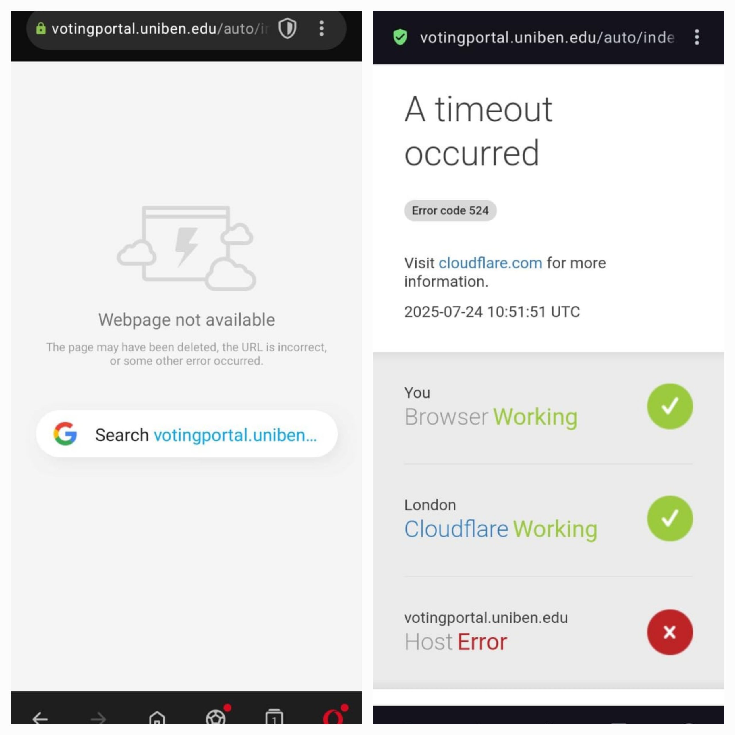 According to reports from across multiple faculties, the official election website, https://votingportal.uniben.edu/auto/index.html, was largely inaccessible on Thursday, between 11:00 a.m. and 12:00 p.m., which was the official voting period. Although the voting timeframe was later extended to 12:50 p.m. after the ICT Unit became aware of the issue, students attempting to log in during the entire period were either locked out entirely or encountered persistent errors that prevented them from casting their votes.
